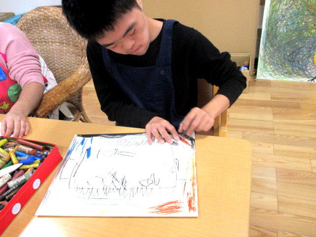 障がいを持っている方が日中における活動の場を確保し、障がい者等の家族の一時的な休息を目的としています。利用できる人は障がい者手帳を持っている方や診断書.意見書などの障がい・難病がある方です。三ヶ日地区内なら送迎します。現在は、16時に生活介護の事業所を終えた6~7名の利用者さんが1.2時間思い思いの時間を過ごしています。