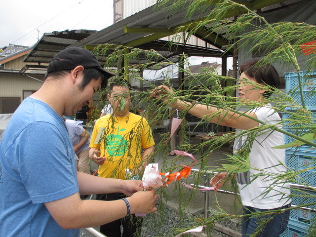 事業所に通う利用者と地域で生活している障がい者の方々の交流で七夕&バーベキューをします。地域でお世話になっている企業さんや民生委員さんも招待しみんなで楽しみます。