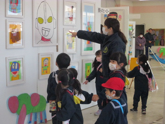 三ケ日にある幼稚園、保育園6か所の子ども達の絵と一緒に展示を行います。毎年楽しみにしてくれるお客さんも多く開催はいつですかと聞いてきてくれます。展覧会後の絵は三ケ日の商店や個人店、企業、幼保などに展示してくれています。